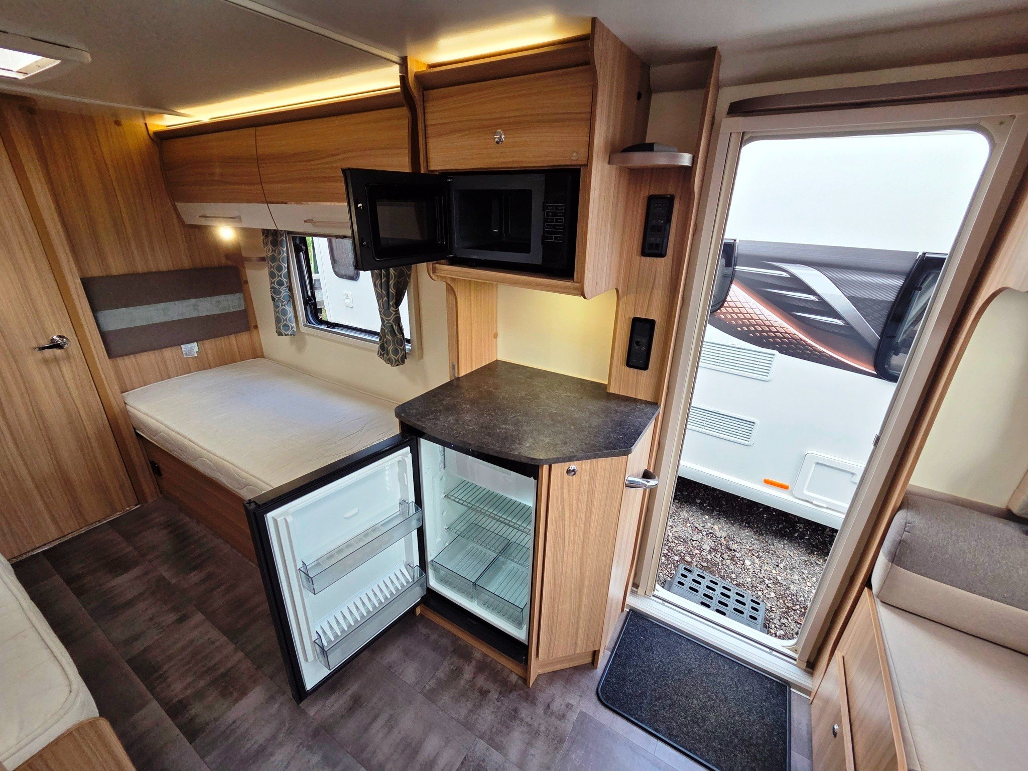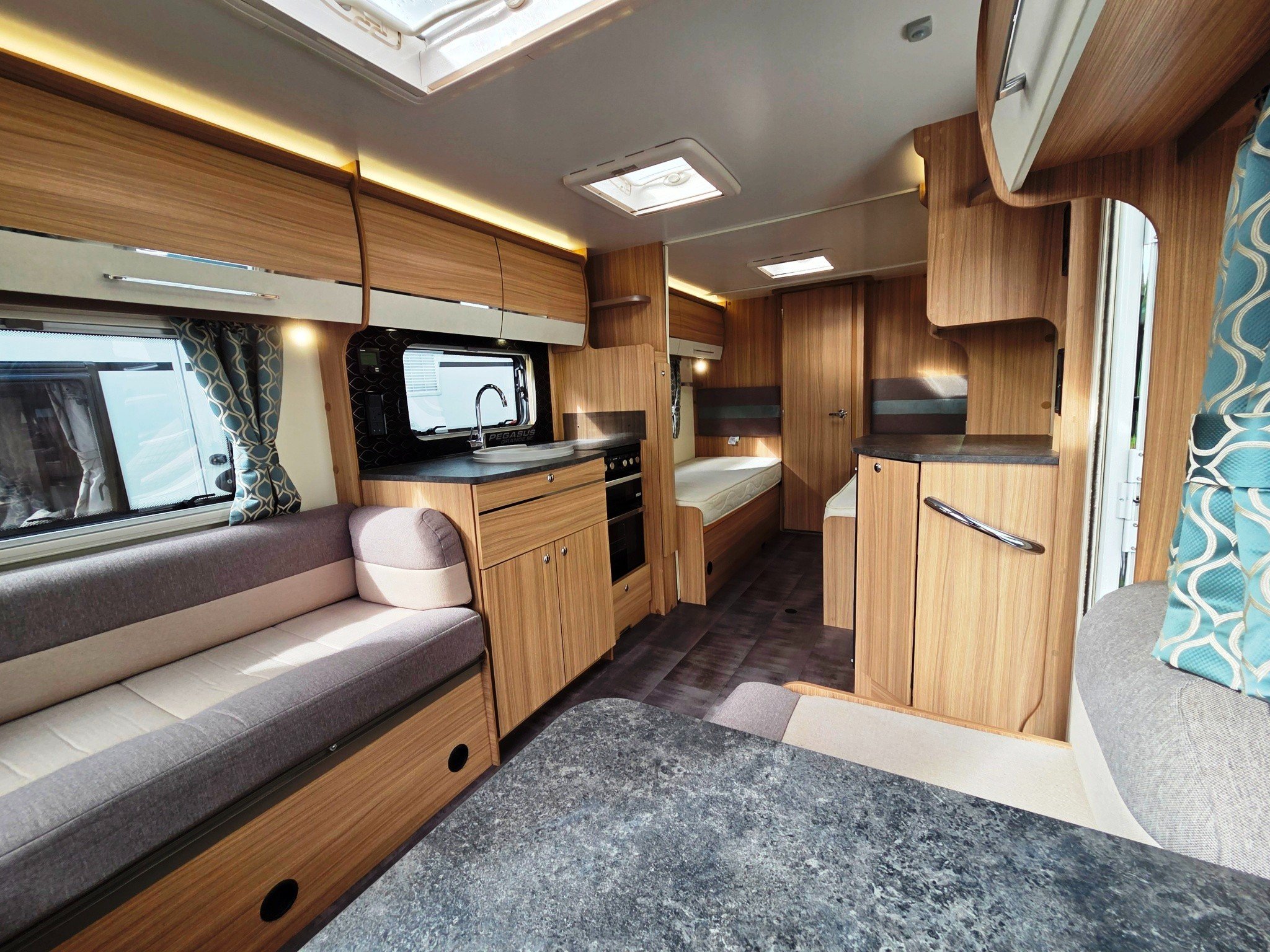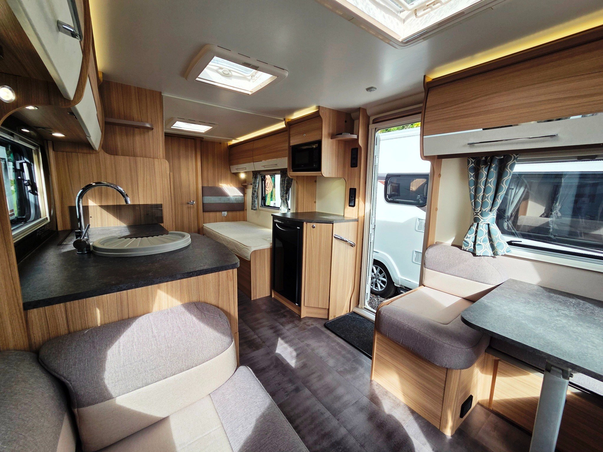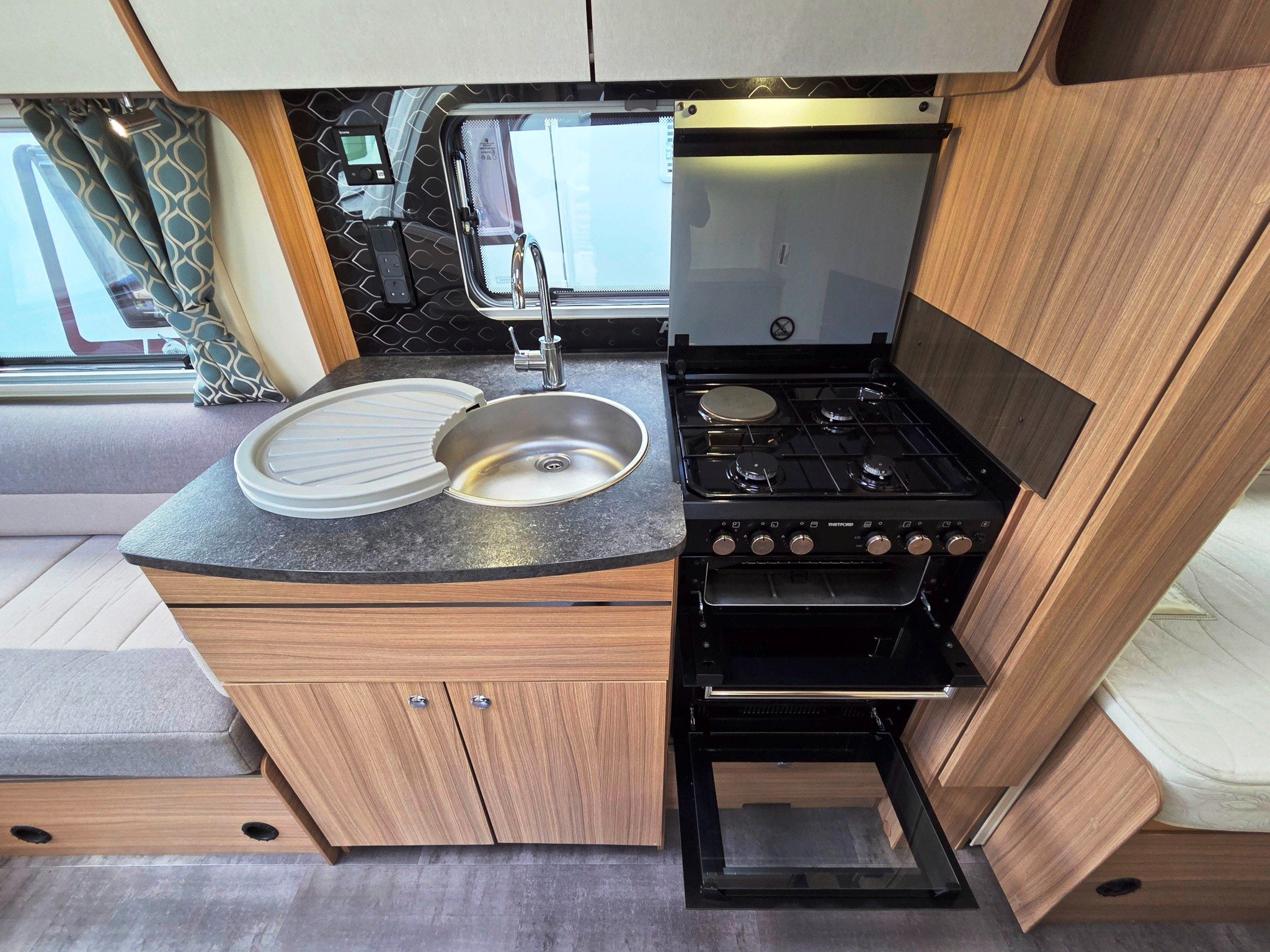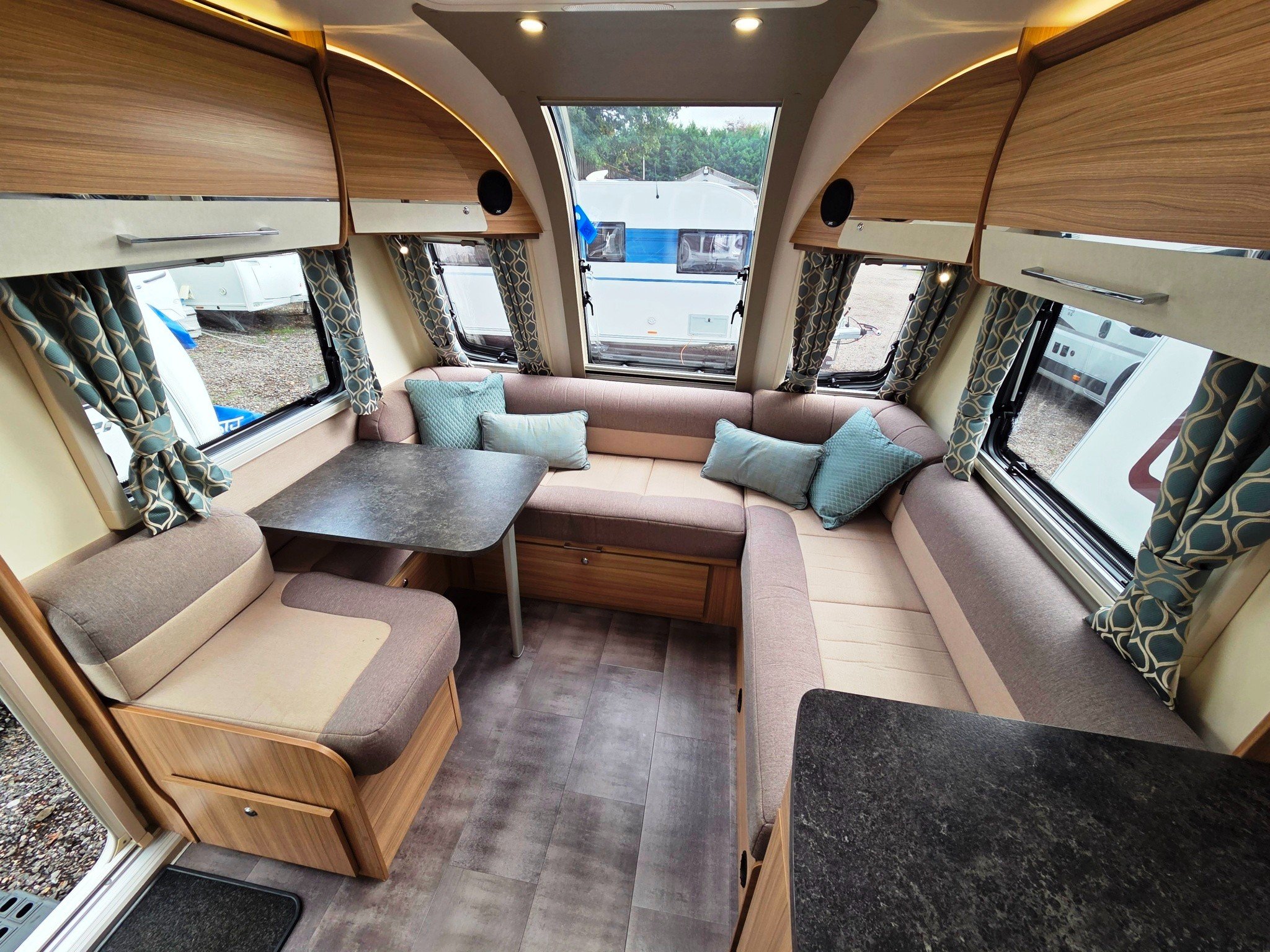 Bailey Pegasus Grande SE Rimini 2021 4 berth fixed single beds touring caravan for sale. 8 ft wide twin axle model for maximum space. One owner model used only a handful of times with many extras.