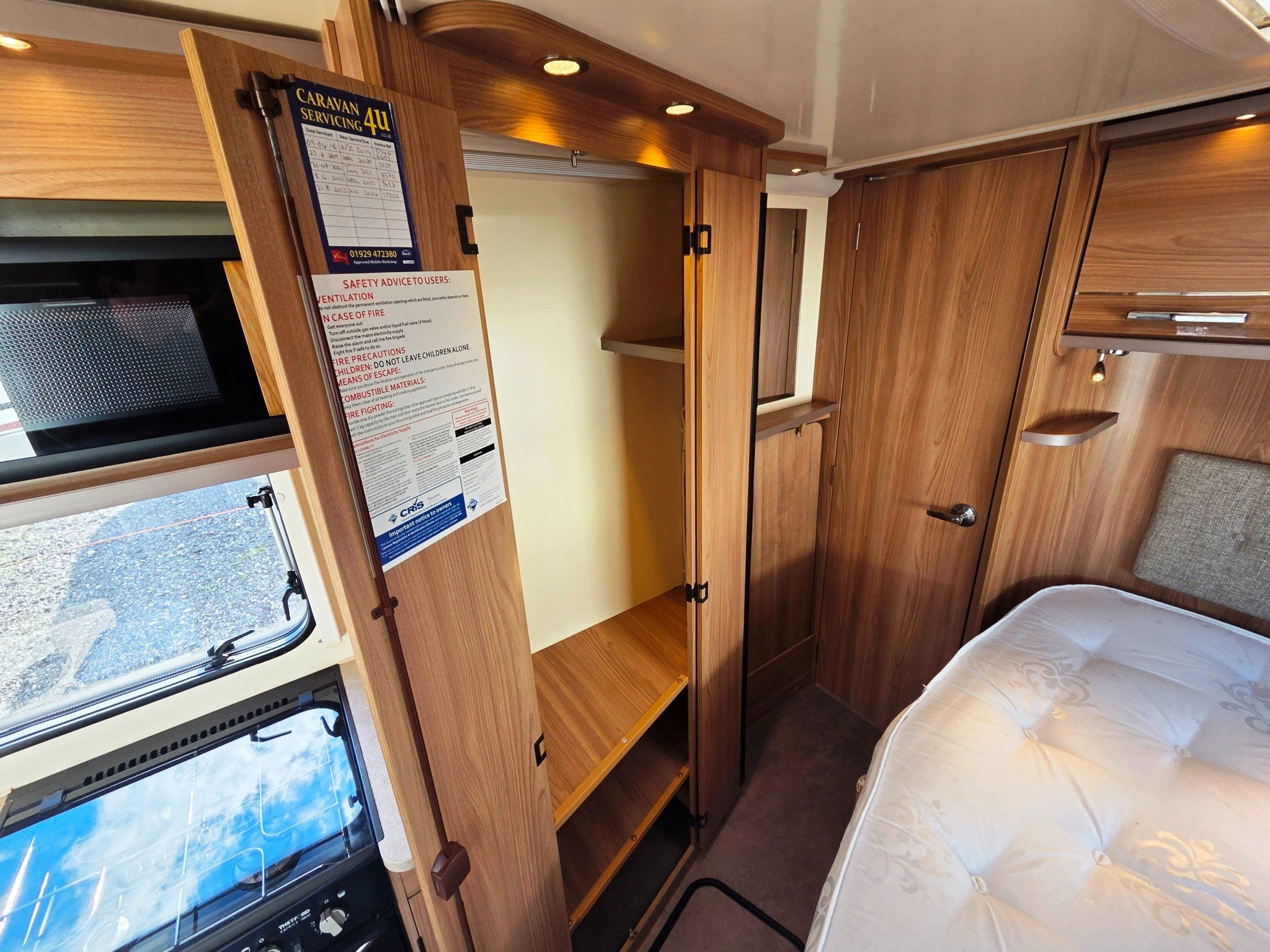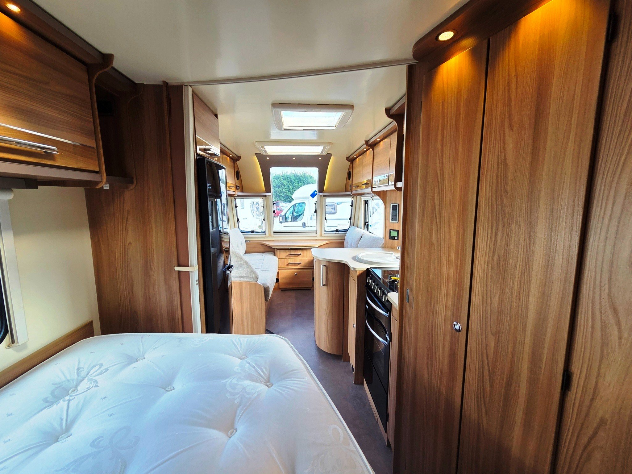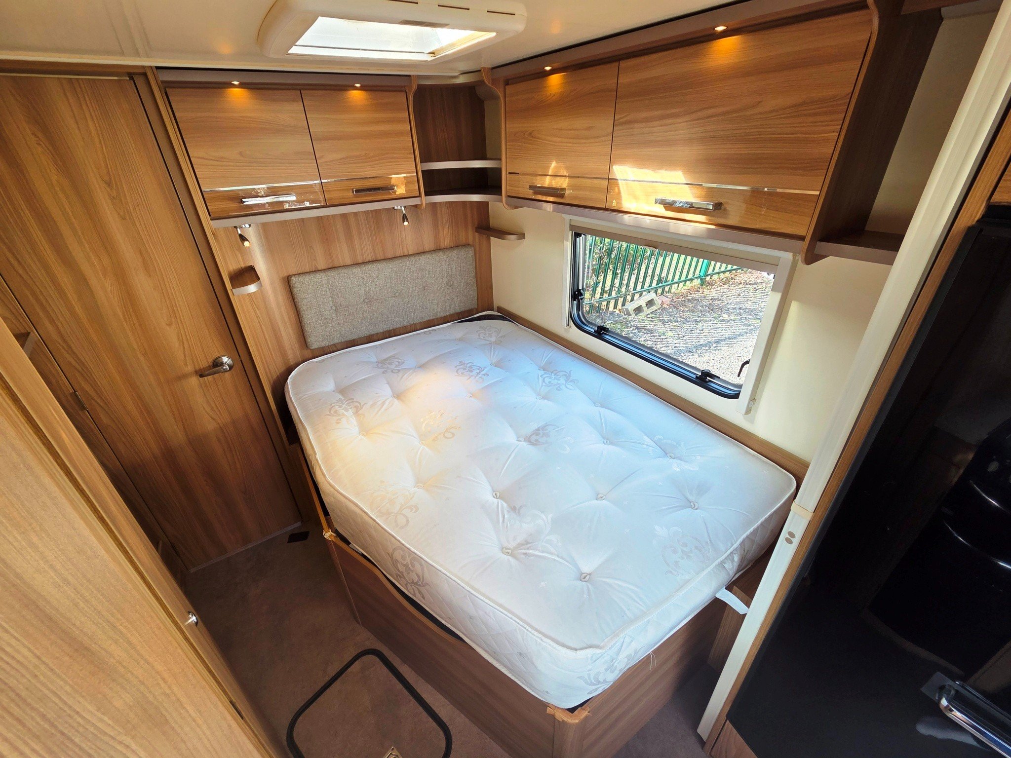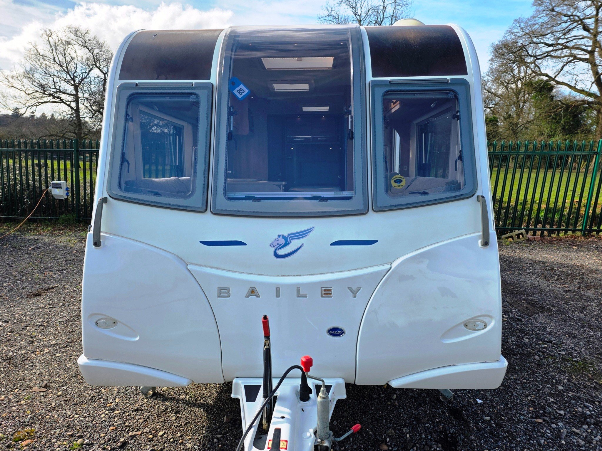 Bailey Pegasus Verona 2016 single axle 4 berth touring caravan for sale with motormover. Fixed double bed and rear washroom with separate shower. Many extras included.