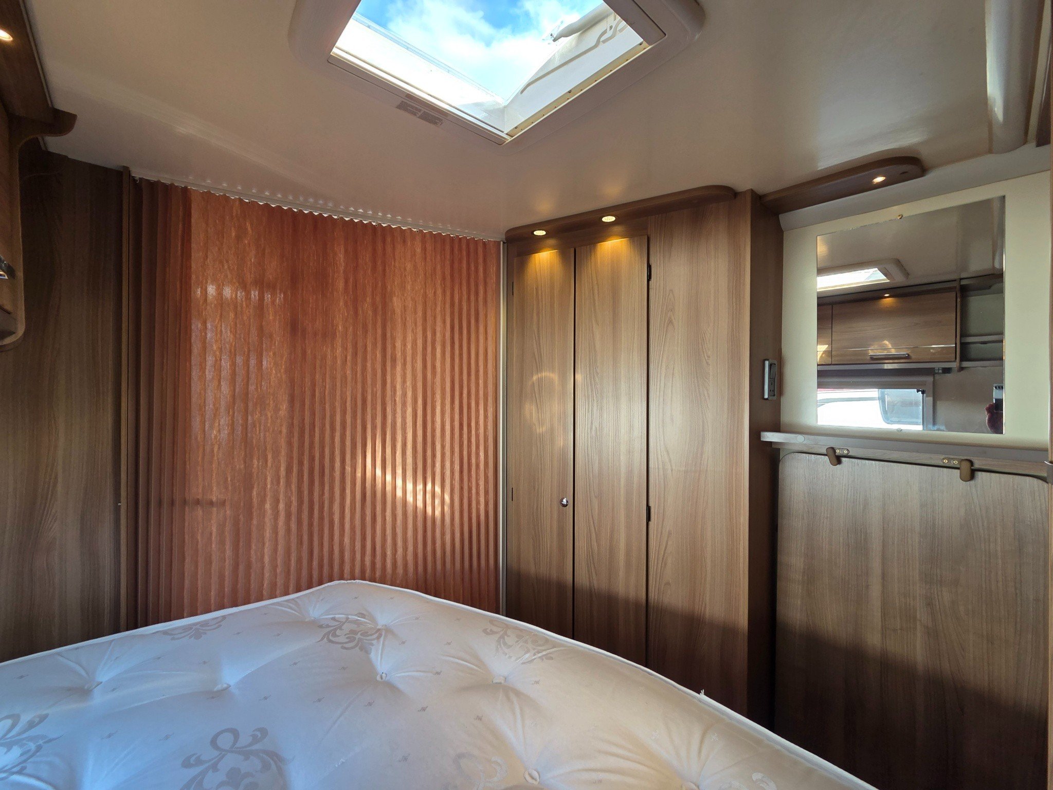 Mid-rear bedroom with fixed double bed. Under bed storage and large wardrobe.