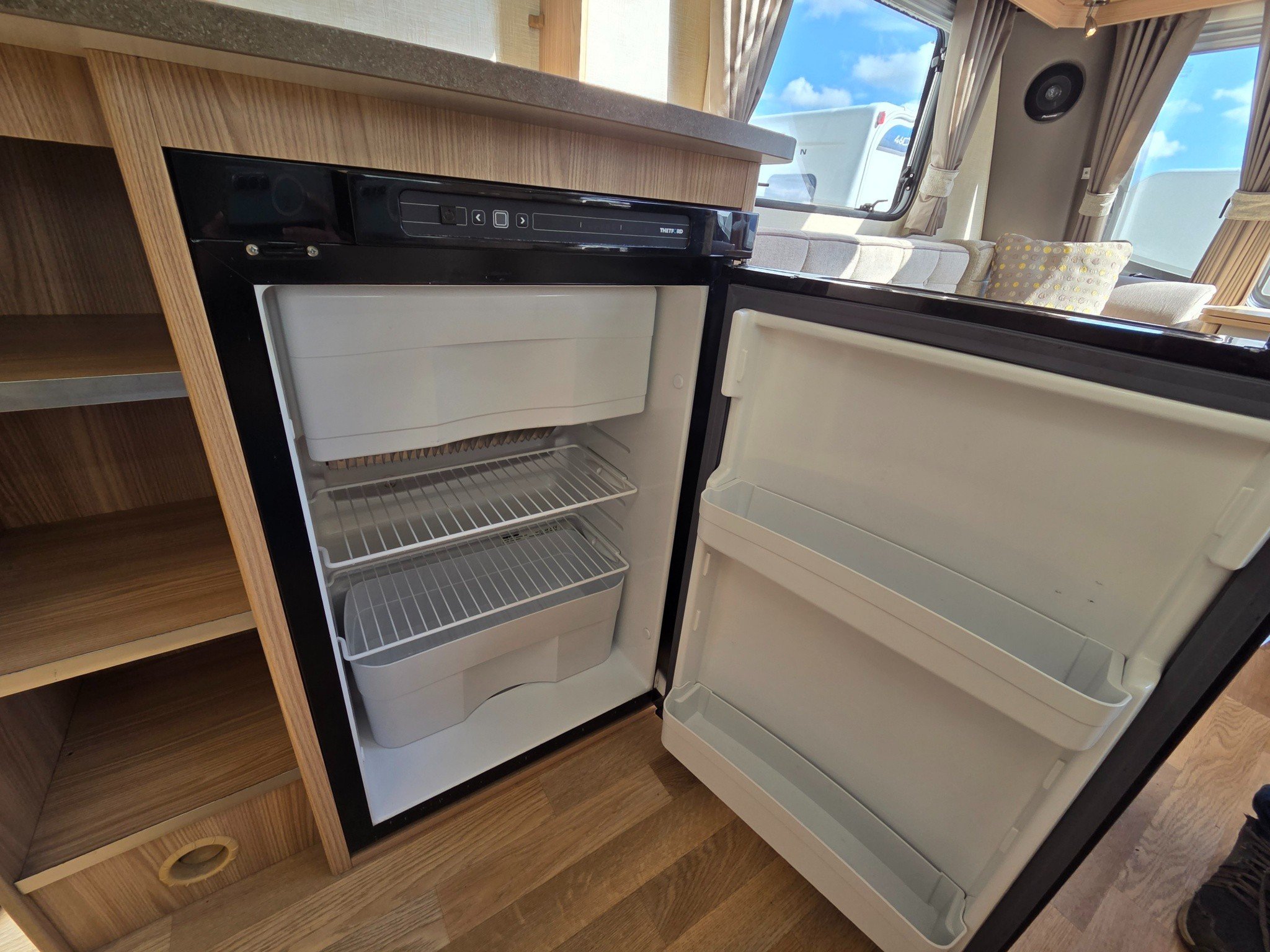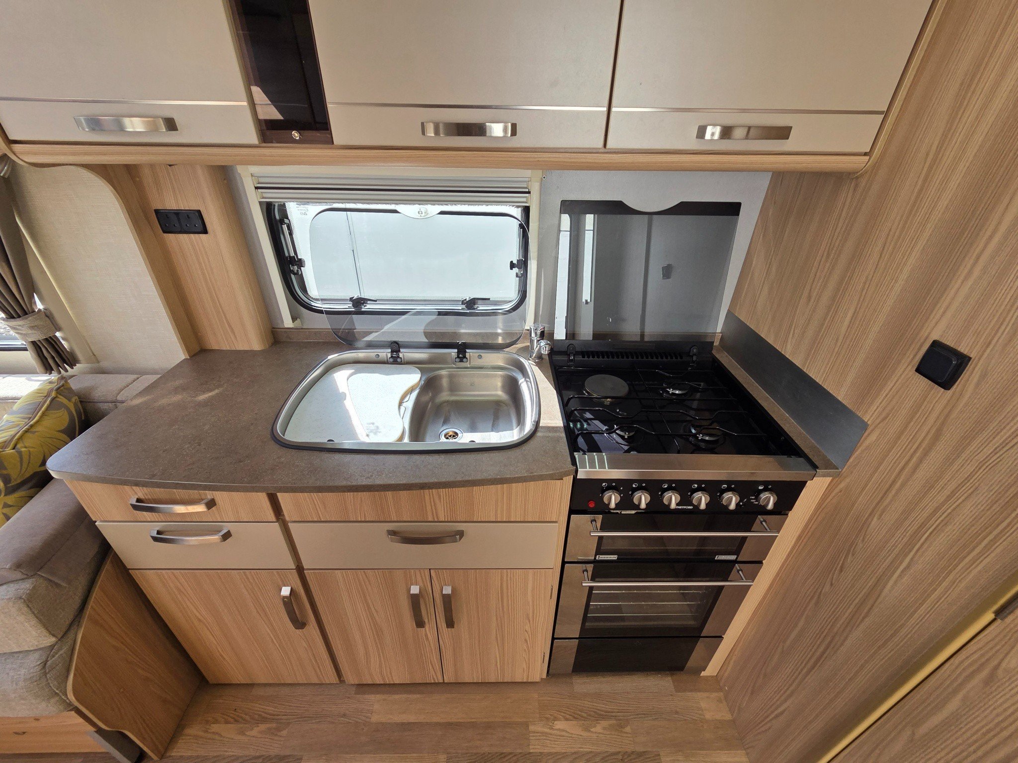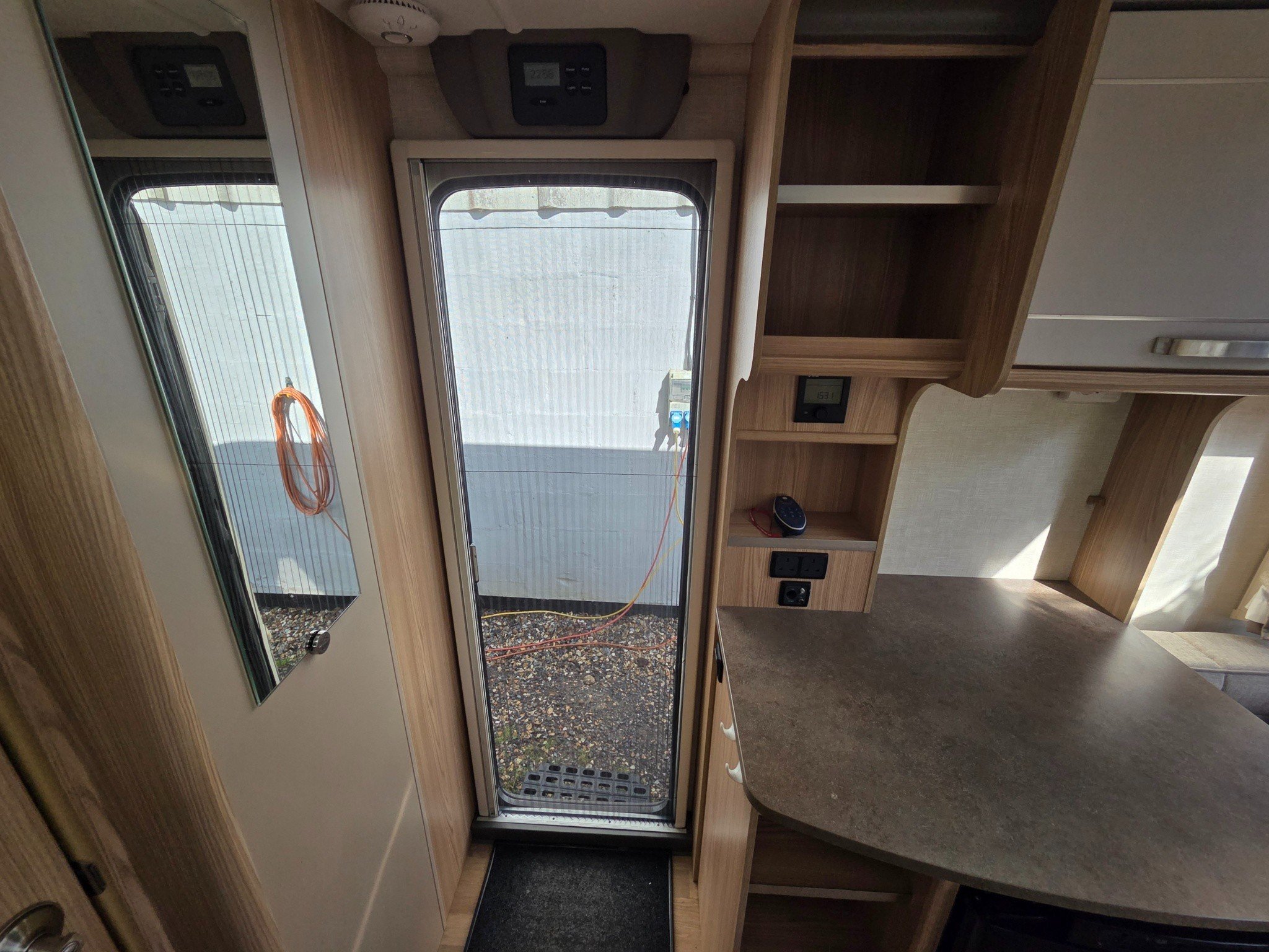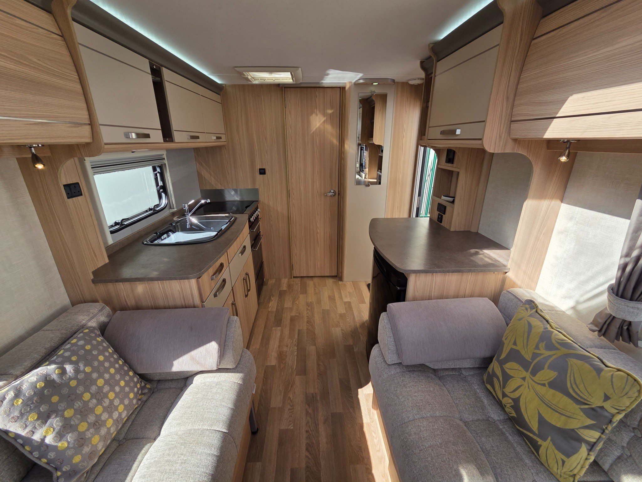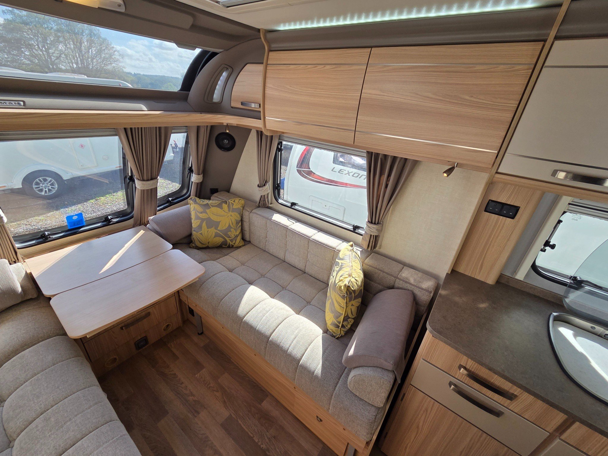 Superb spec with motormover, panoramic sunroof, Truma combi heating and hot water, alloy wheels, drop down carpets, alarm with fobs, extractor roof fan, external 240v & BBQ gas outlets, ALKO anti snake hitch, ALKO ATC and CD-radio.