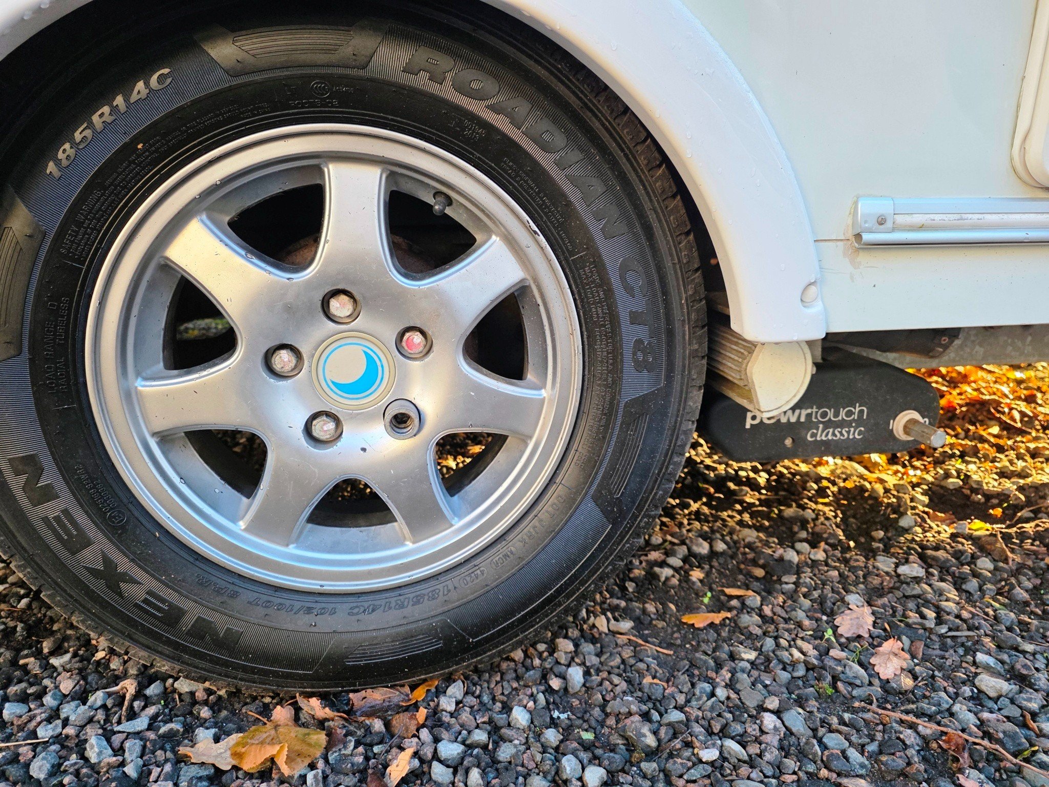 Extras include aquaroll, wastemaster, gas bottle, wheel clamp, leisure battery and more.
