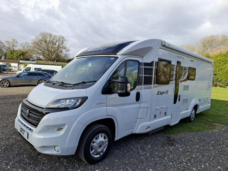 £44,995Swift Escape 684 A comfortable family motorhome for four, or exclusive space for a couple Year: 2020 | Berth: 4 | Belts: 4 Engine: 2.3L | Fuel: Diesel | Gearbox: Manual Mileage: 52741 | Price: £44,995 Behind the cab is offside L-shaped …