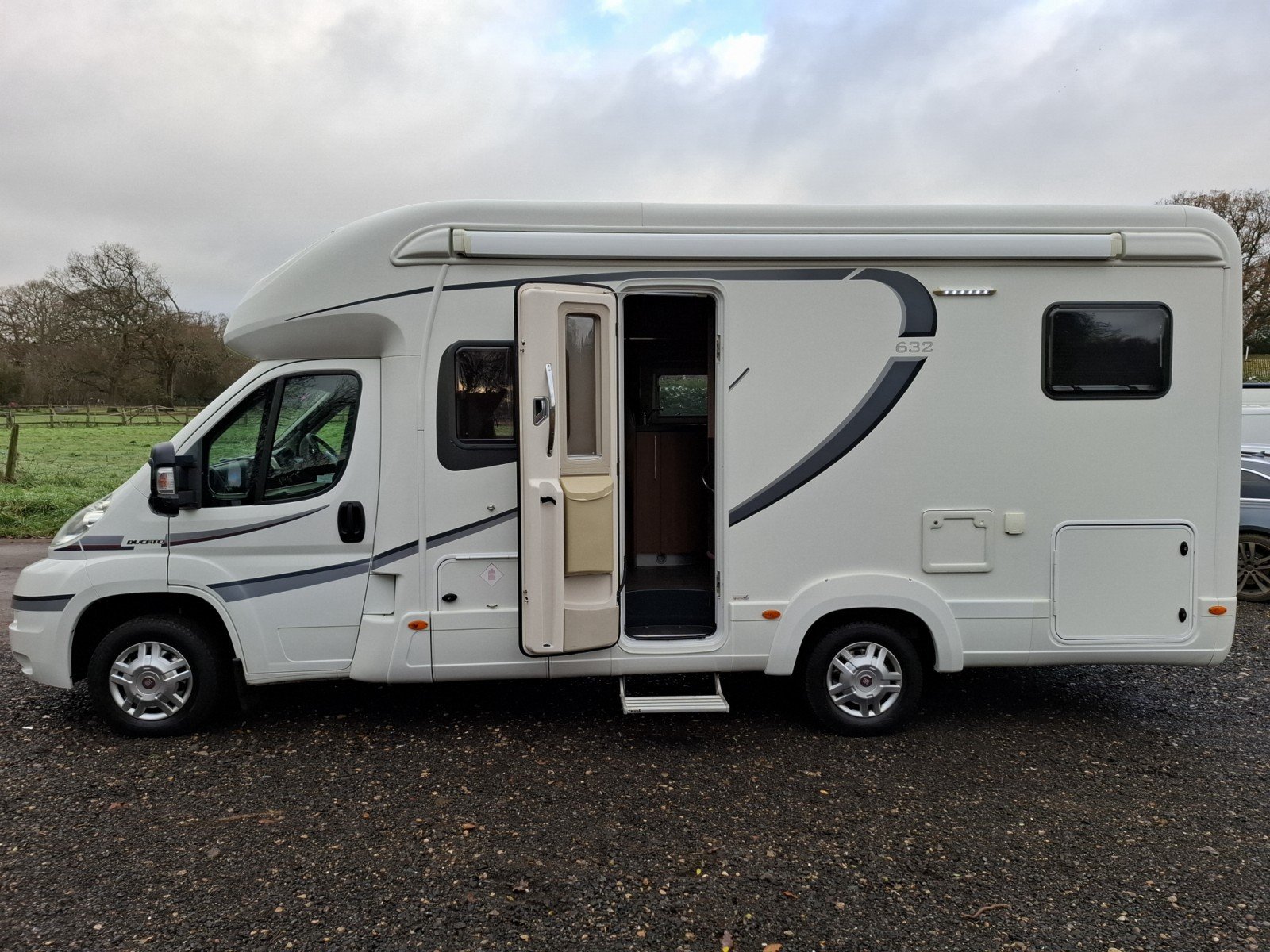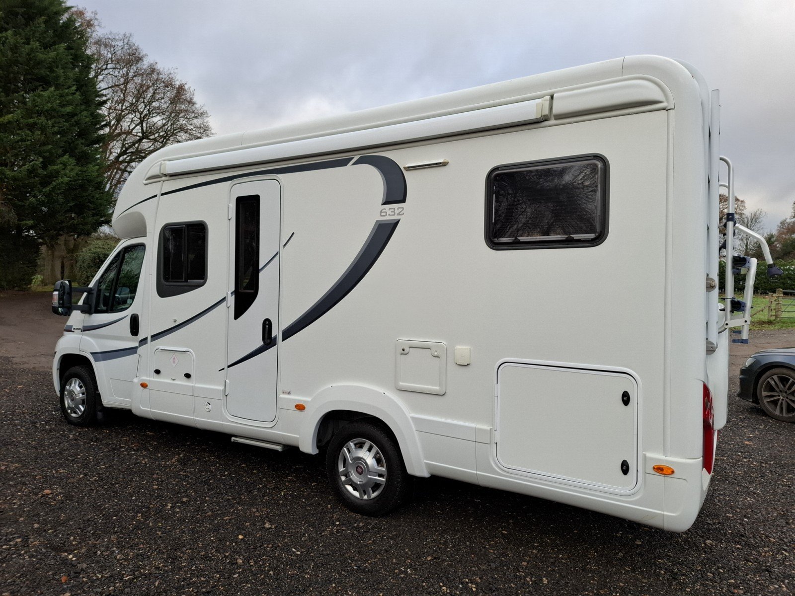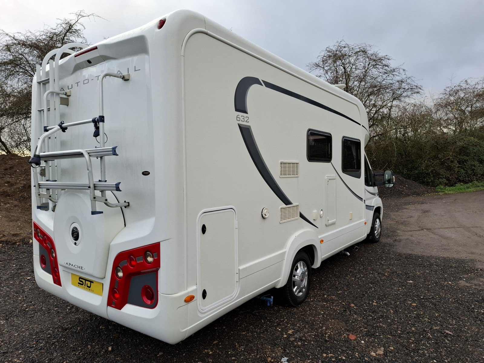 At the rear of vehicle is a fixed transverse double berth over a large internally or externally accessed storage area.