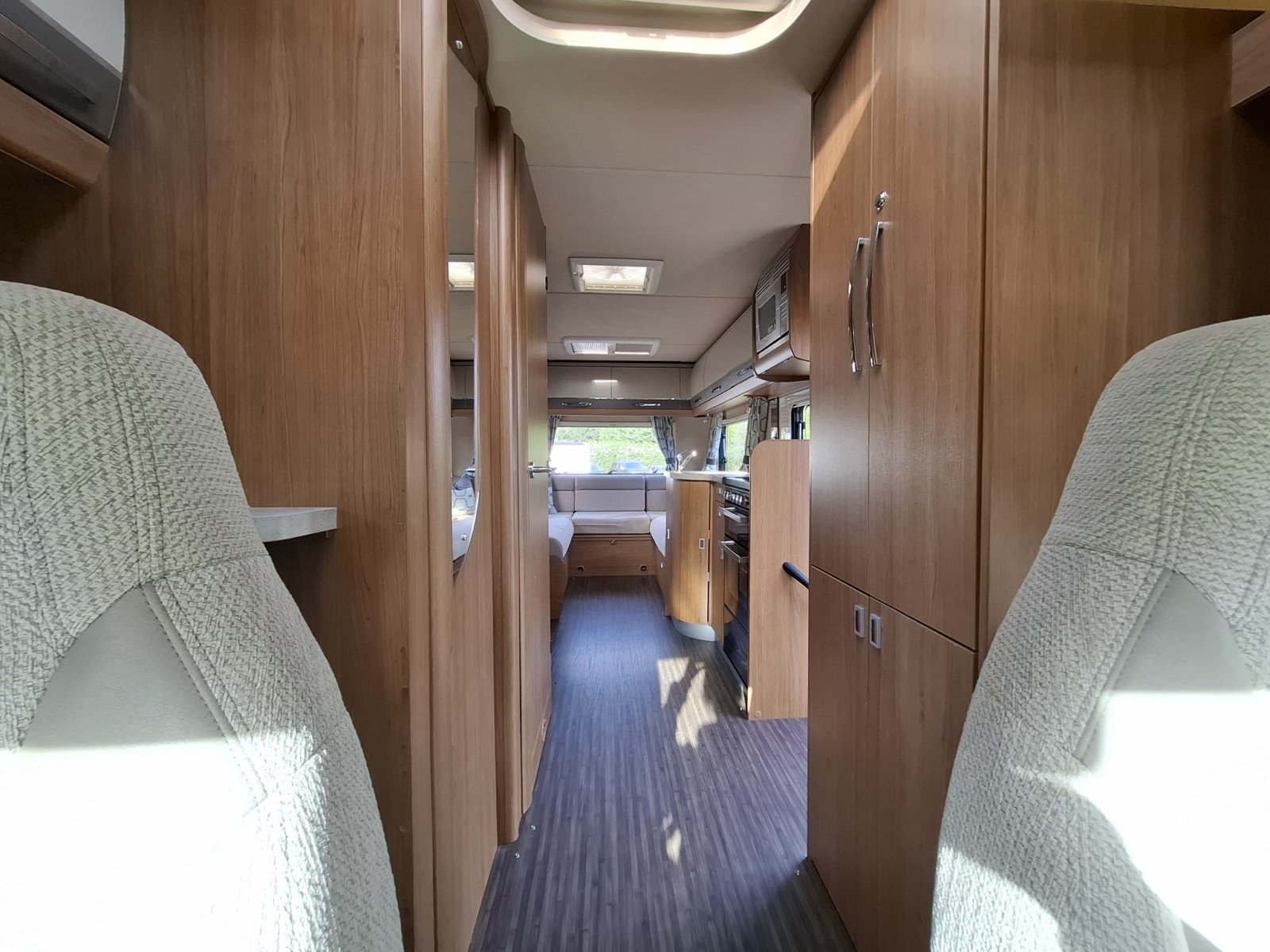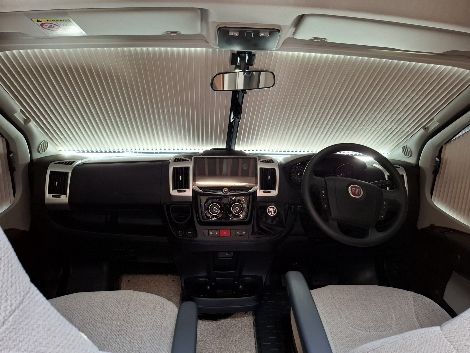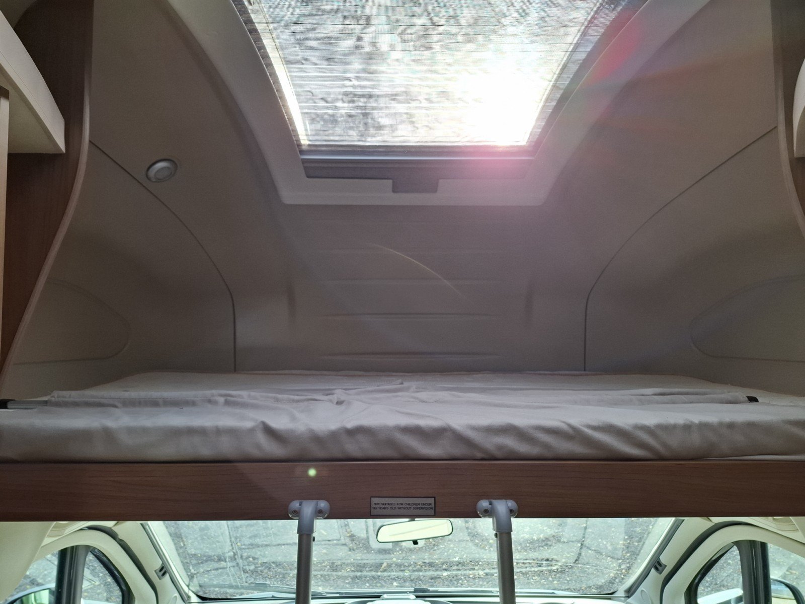 Above the two swivel cab seats there is a large over cab double berth.