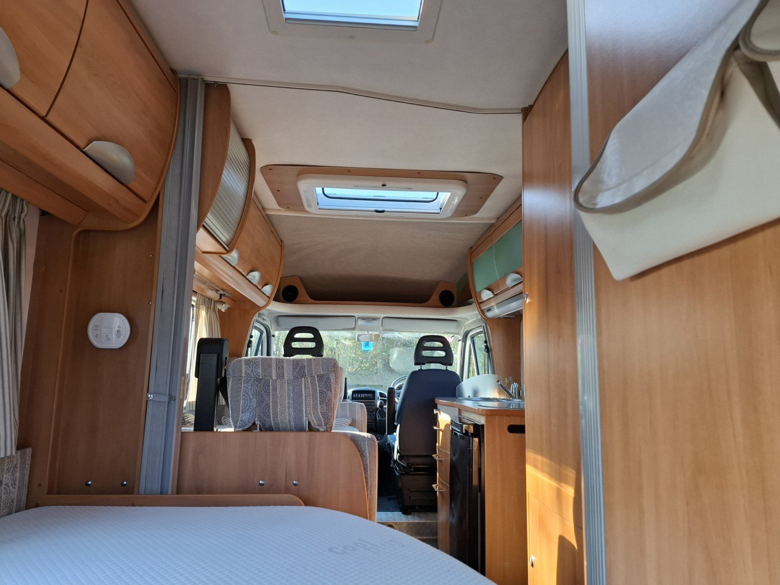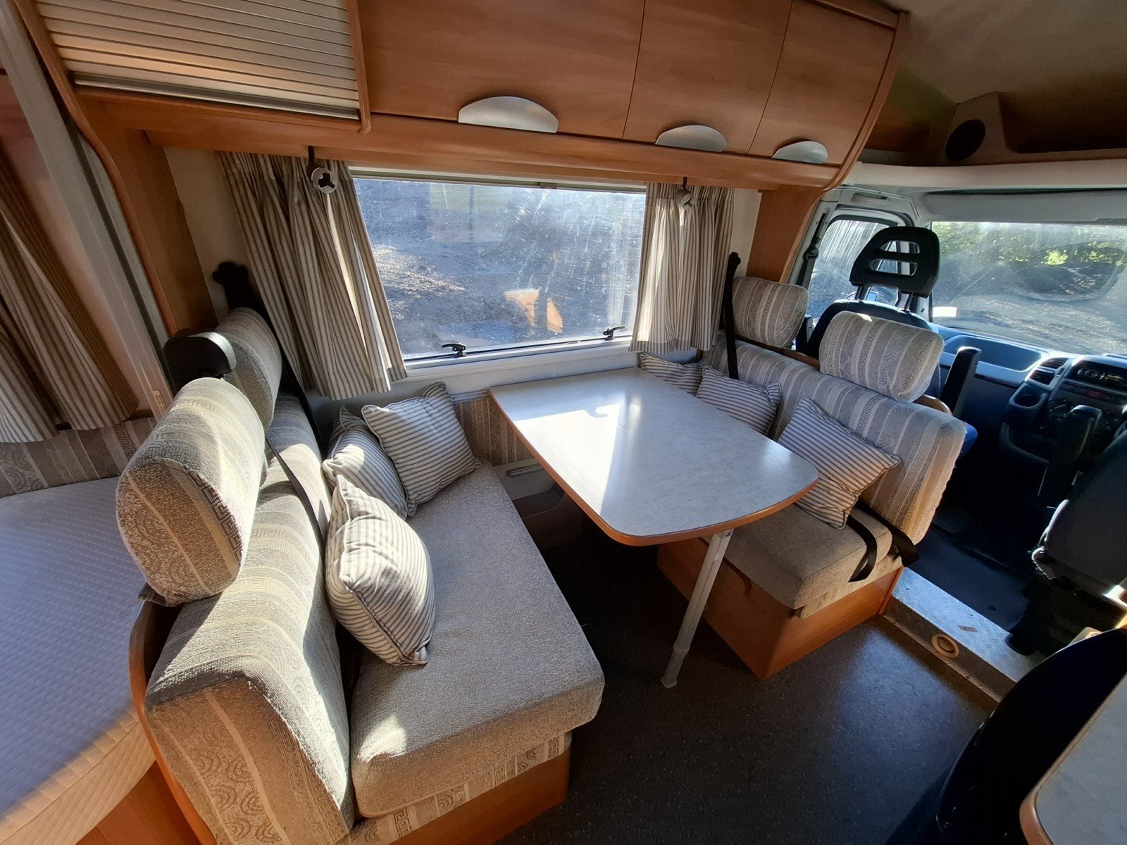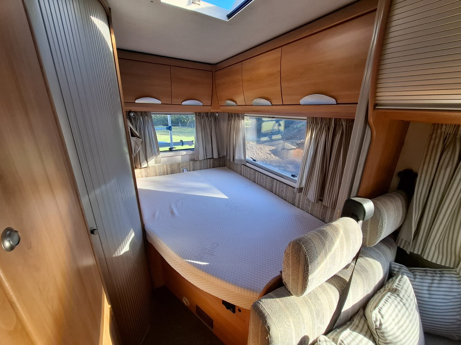 Next to the bathroom and behind the dinette is a fixed rear French bed (with internally and externally accessed storage beneath).