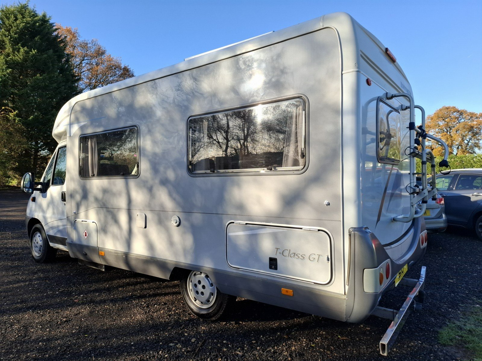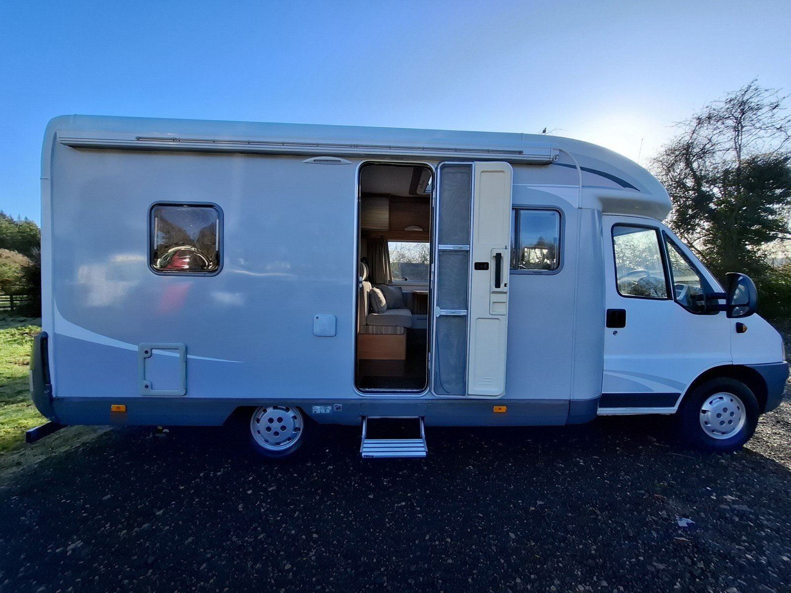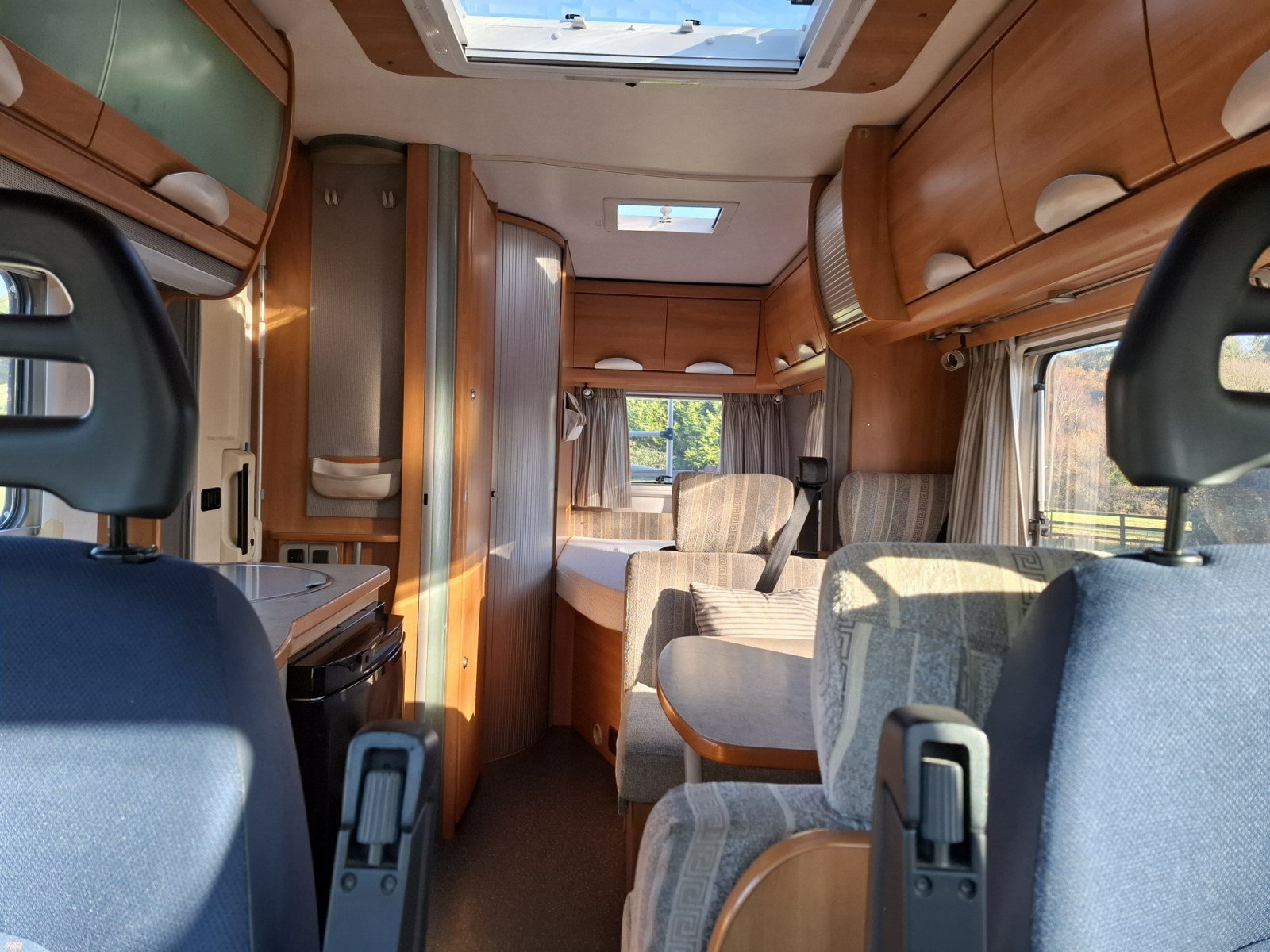 Next to the bathroom and behind the dinette is a fixed rear French bed (with internally and externally accessed storage beneath).