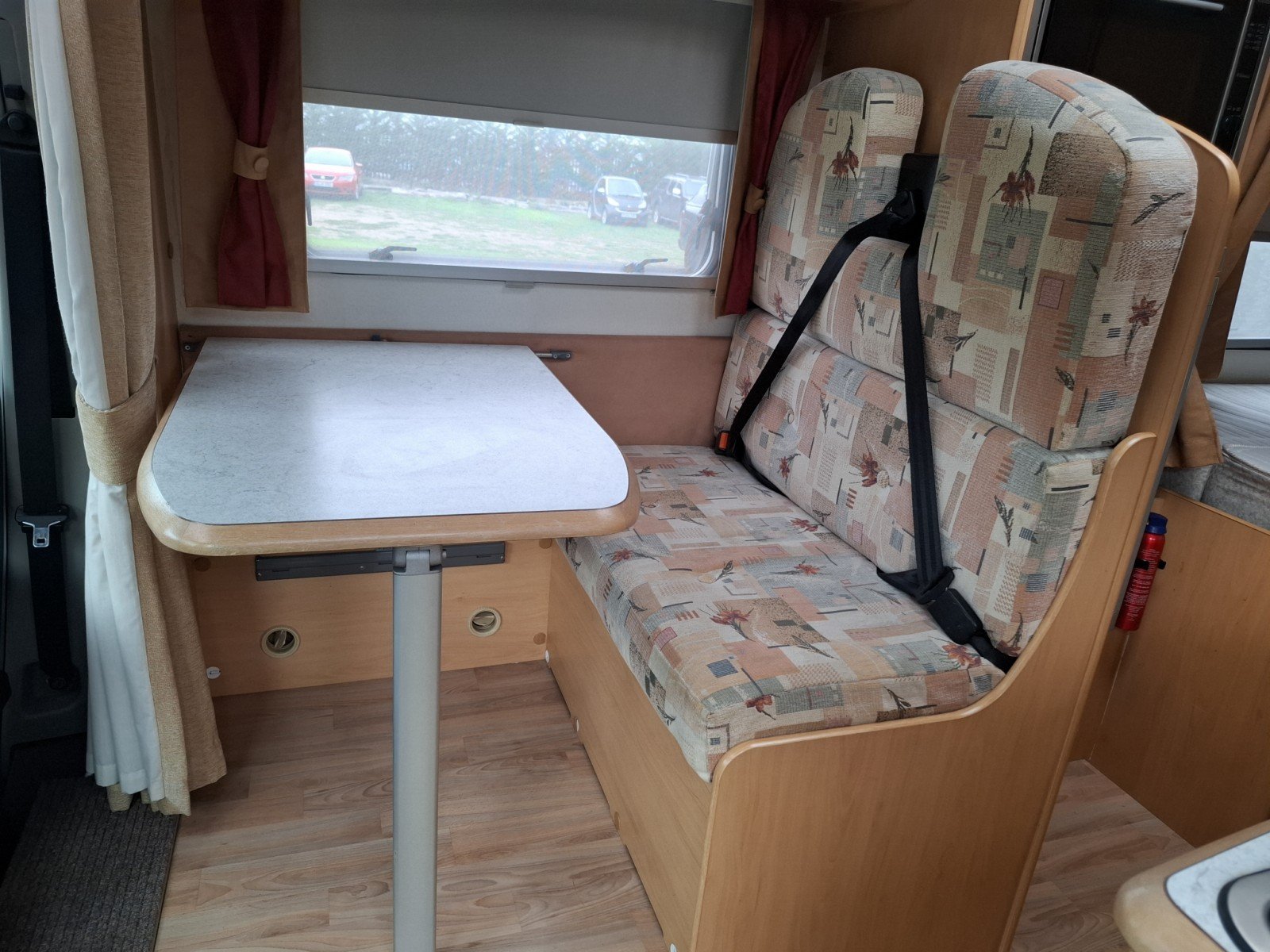 Upon entering through the nearside habitation door, you are welcomed into a well-appointed interior featuring a half dinette with two additional seat belts. This seating area is further enhanced for both leisure and dining by the inclusion of swivel cab seats. With the drivers’ seat rotated, the dinette can also be configured into a single berth for added sleeping capacity.