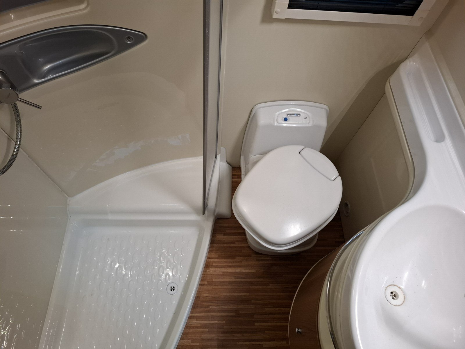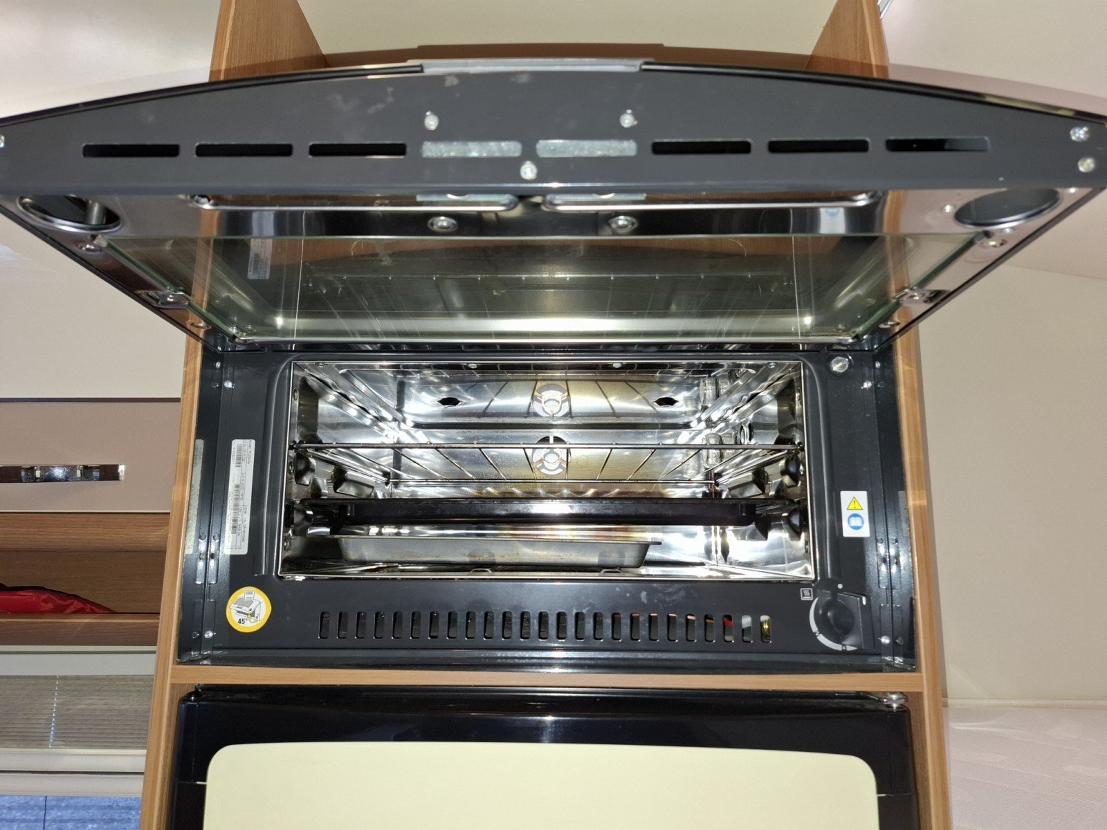 At the front of the habitation area is a full dinette which can seat 4 people (with two forward facing 3-point seatbelts, and two rear facing lap belts). This can be made to create a small double berth. On the opposite side there is an additional side sofa.