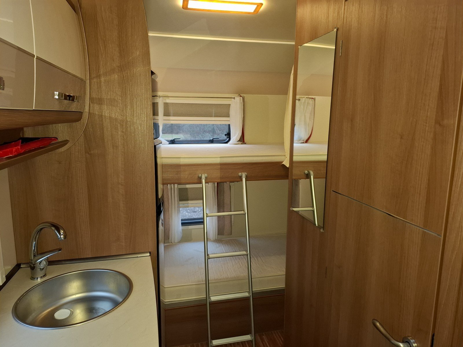 Above the cab there is a large double transverse double berth which can be left made up or used as additional storage space whilst travelling.
