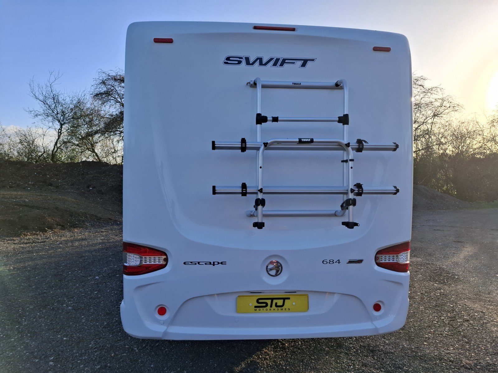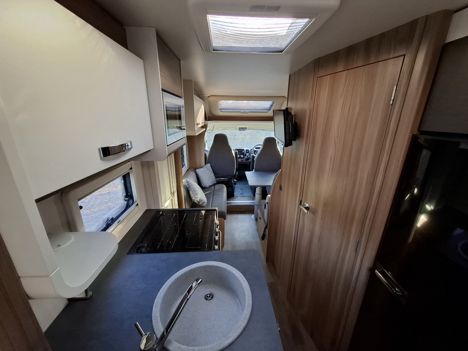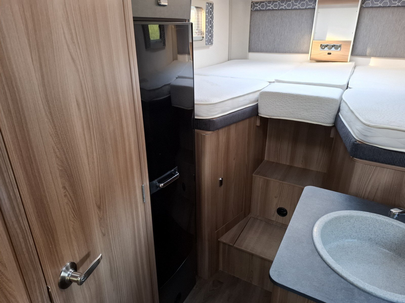 At the rear of the vehicle are raised single berths over a garage. These beds can be converted into a transverse double berth.