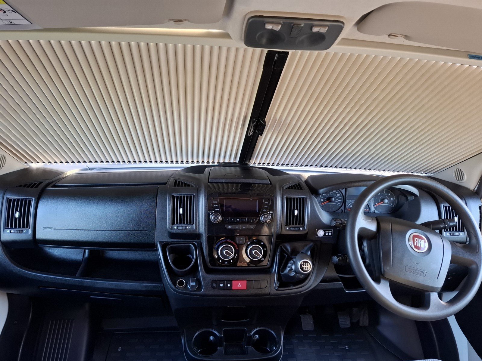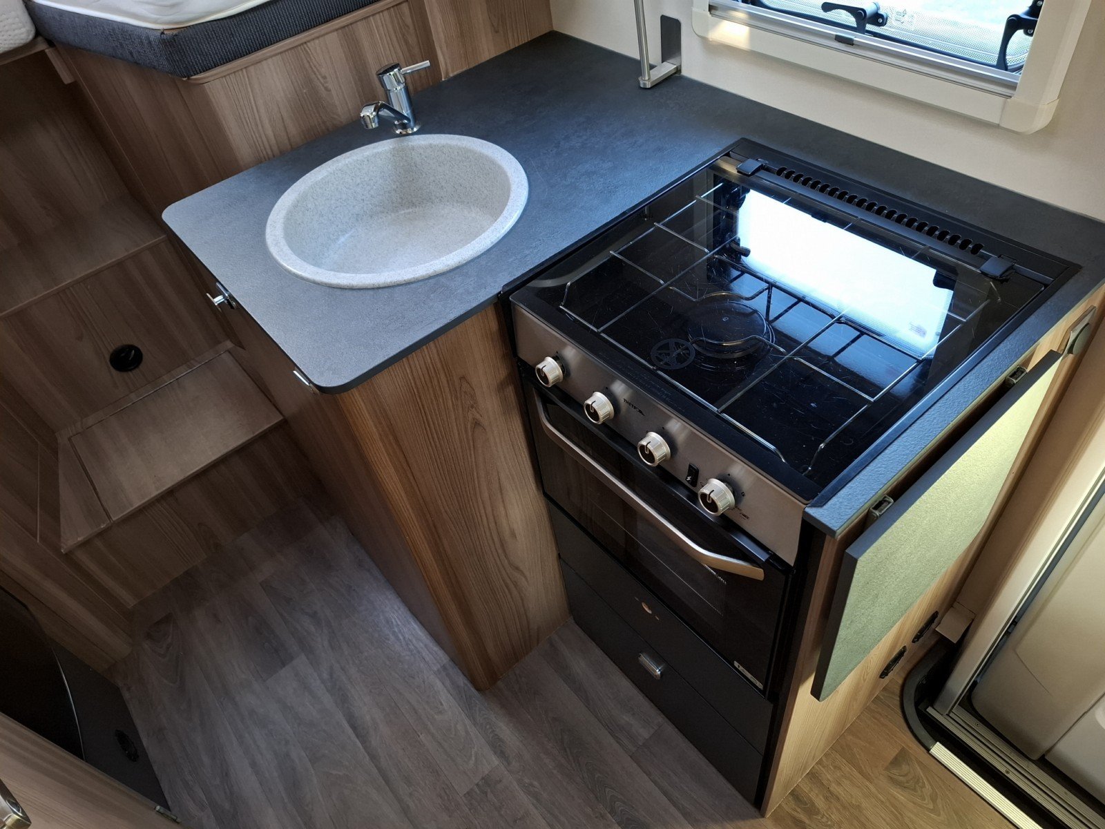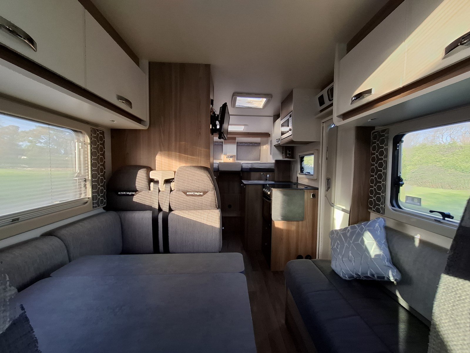 Behind the cab is offside L-shaped seating (with 2 additional seat belts), and a nearside side sofa around an adjustable table. This area can be enhanced for leisure/dining with the use of the cab swivel seats, and can be converted into a transverse double berth.